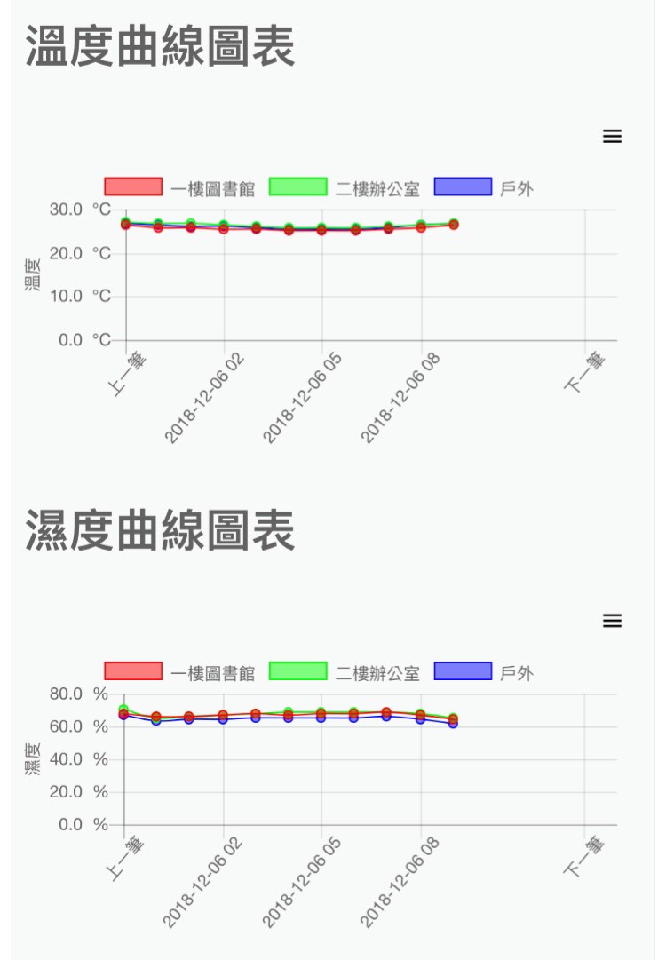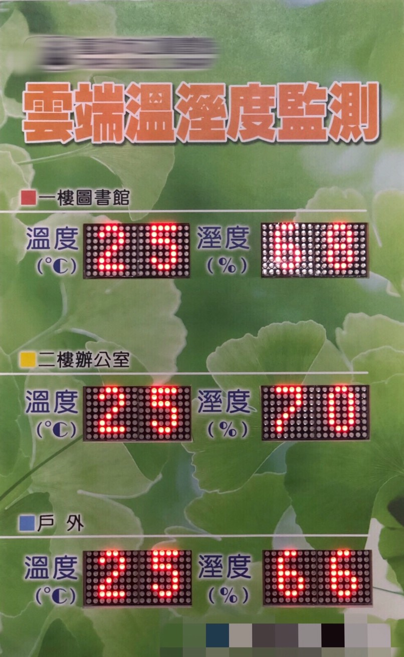 荷果科技客制化整合了館內各處的溫溼度數值 , 透過各項感測器將資訊送回顯示器上 , 並建立館方專屬的雲端平台 , 可透PC及手機等行動裝置來查詢即時狀態與歷史數據 , 也能透過圖表分析來快速的了解館內的溫溼度變化。